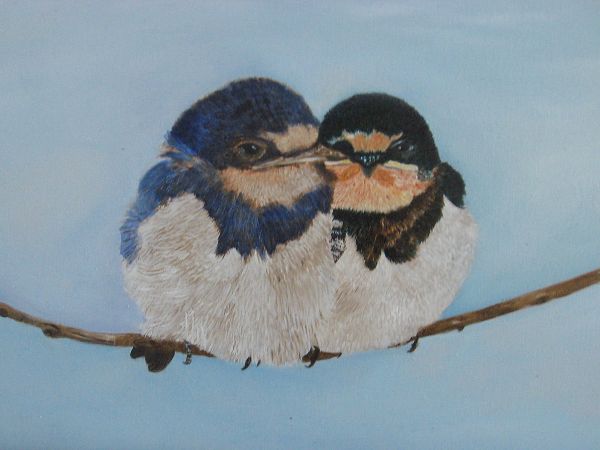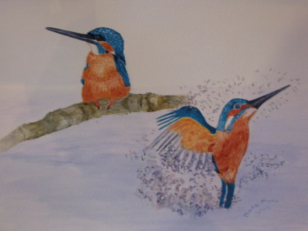 De ijsvogels zijn in aquarelleverf geschilderd,