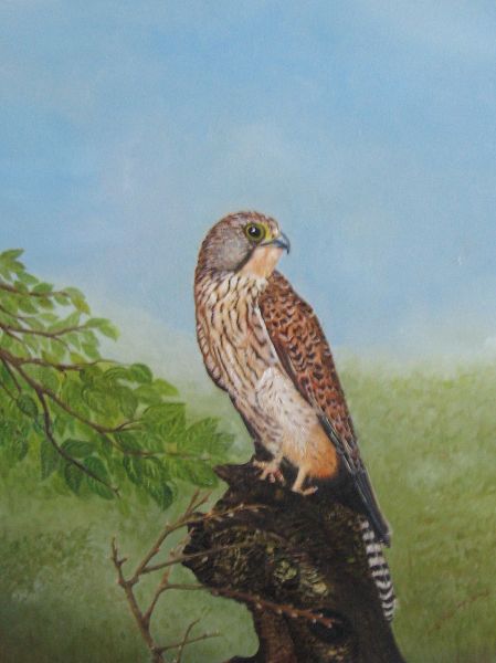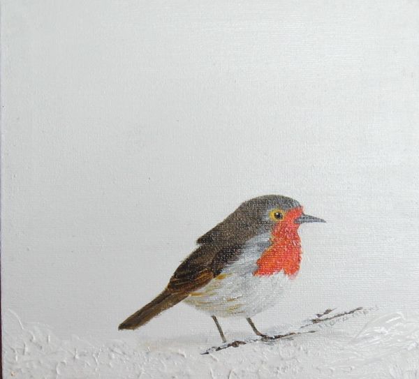 Het roodborstje is op vlotte wijze in acryl geschilderd. Voor de sneeuw is structuur gebruikt.